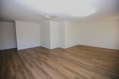 - Open plan living and dining areas with ceiling fan & wall heater